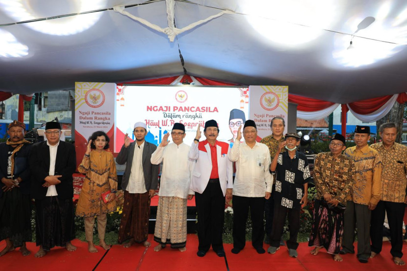 TOPNEWS62.COM Badan Pembinaan Ideologi Pancasila (BPIP) mengadakan acara Ngaji Pancasila yang bertepatan dengan peringatan haul pahlawan nasional Wage Rudolf Soepratman. Kegiatan ini dilaksanakan di area makam W.R Soepratman, yang terletak di Jalan Kenjeran, Surabaya, pada Sabtu, 23 Maret 2024. Acara ini juga diisi dengan pemberian santunan kepada Kelompok Disabilitas dan Anak Yatim Panti Asuhan yang berada di Surabaya.