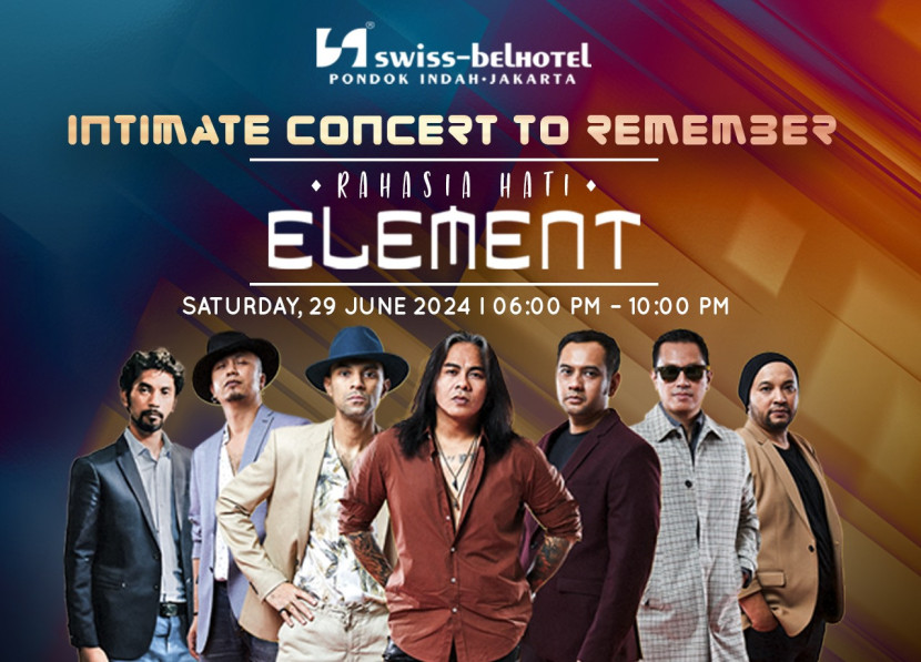 TOPNEWS62.COM,JAKARTA–Swiss-Belhotel Pondok Indah menghadirkan Element band untuk memeriahkan periode libur sekolah pada tanggal 29 Juni 2024. Tersedia paket menginap maupun paket makan malam buffet, beserta promo dan hadiah menarik yang akan dibagikan saat acara berlangsung. Konser intimate keempat ini merupakan acara yang secara mandiri diselenggarakan oleh Swiss-Belhotel Pondok Indah setelah sukses dengan konser Java Jive (2019), Kanda Brothers (2022), dan Naff (2023) pada tahun-tahun sebelumnya.
